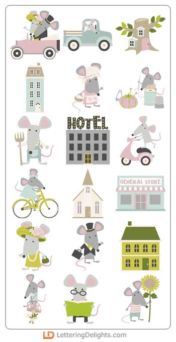 A fine tale of the city mouse versus the country mouse. Adorable graphics perfect for scrapbooking, decorating childrens rooms and more!