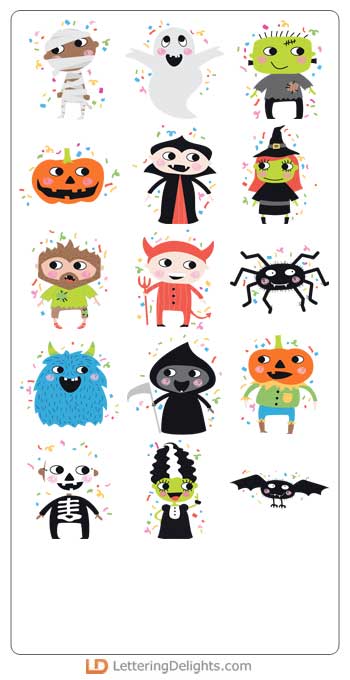 Cute, whimsical characters dressed and ready for halloween! Perfect for scrapbooking, Halloween parties, decorations and more!