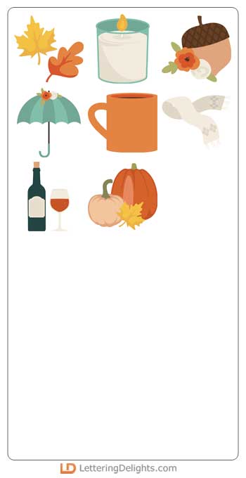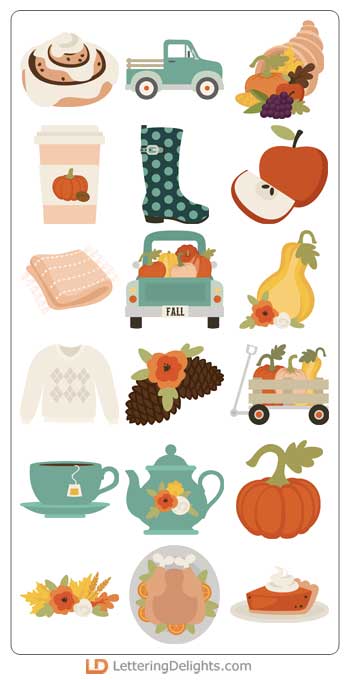 This graphic collection is everything you love about fall, from pumpkin spice, to sweater weather, leaves and more! Perfect for scrap book pages, crafts, gifts, decor, planner stickers, cards and more!