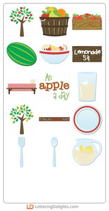 Spread out the picnic blanket and gather friends and family. This graphics set has many images to help you keep scrapbook memories of cherished family picnics.