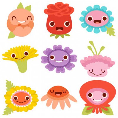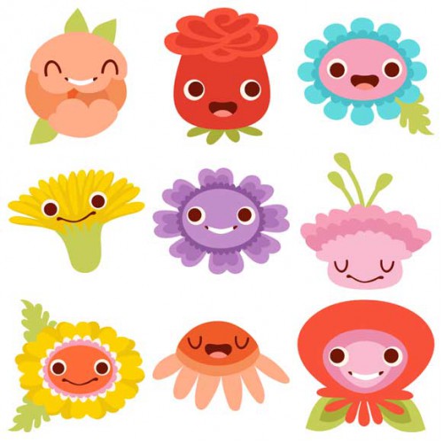 This adorable collection features happy friends dressed as beautiful flowers and kawaii style blosso..
