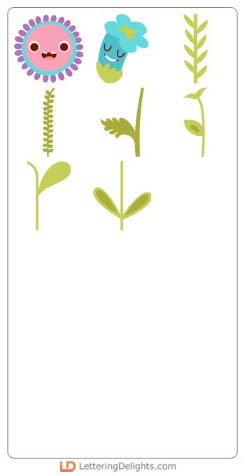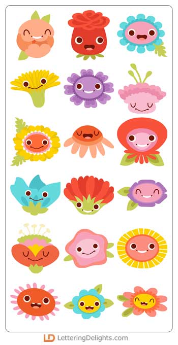 This adorable graphic collection features happy friends dressed as beautiful flowers and kawaii styl..