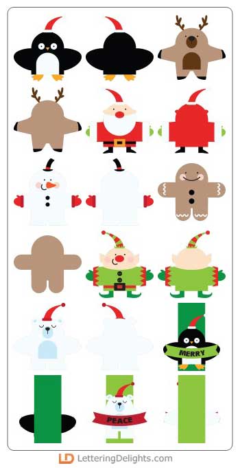 Use your scissors and glue to create adorable two-sided Holiday Hug cards. Place the saying of your choice on top of the character...print, cut, glue, and fold! Easy. We've included cards with backgrounds for easier cutting if need be!