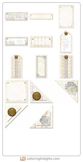 The images in this Journaling Delight set are made up of tan colors. This has that vintage feel about it. It has a matching alphabet.
