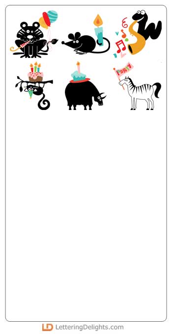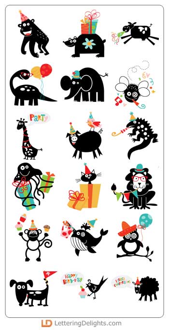 There are 26 party animals (A-Z) in this cute set that is great for celebrations of all kinds.