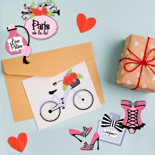 This beautiful french inspired set is all about love in Paris! Pretty graphics perfect for Valentines, card making, crafting, decor and more!