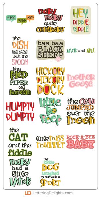 All your favorite nursery rhyme titles and lines complied into one fun graphic set. Perfect for card making, scrapbooking, planners, nursery decor and more!