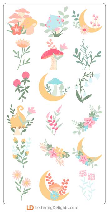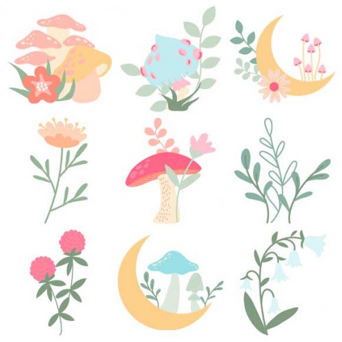 This adorable graphic collection features cute mushroom fairies, mushrooms, and beautiful florals. P..