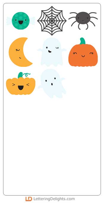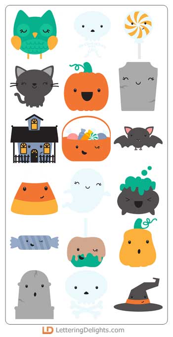 This adorable graphic set features Kawaii style Halloween themed imagery. Perfect for Halloween, parties, gifts, crafts, decor, cards, planner stickers, scrap book pages and more!