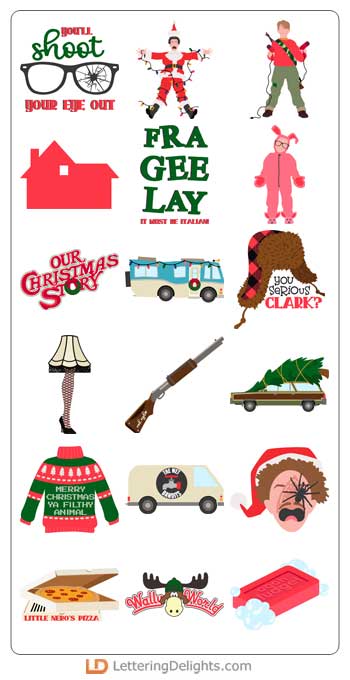 This fun graphic set features 28 Pop Culture Christmas images, perfect for cards, crafts, gifts, decor, planner stickers, scrapbook pages, parties and more!