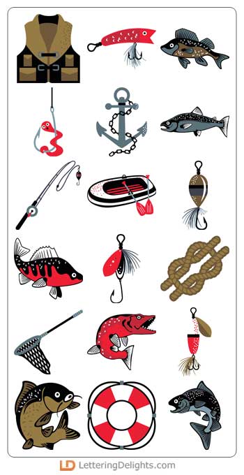These modern fishing themed graphics are perfect for the fisherman in your life. Create cool gifts, cards, scrapbook pages or more!