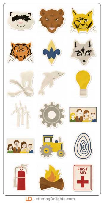 Did you ever stop to notice all the different skills to be gained through participation in Cub Scouting and Boy Scouting? Whew! It took 10 Graphic Sets to depict them! We paid homage to the colors of each organization by creating 5 sets in blues and yellows and another 5 in browns and greens. These images will make some pretty great invitations, decorations, newsletters and memory pages. Since your Scout has to do the hard work of earning the badges, we're happy to help you celebrate his achievements!
