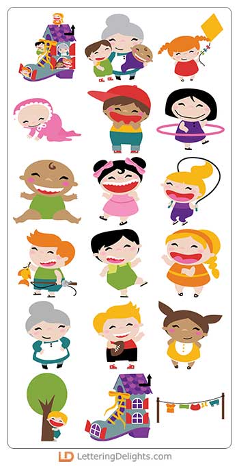 Our take on a classic nursery rhyme, these adorbable kids and loving mother are perfect for scrapbooking, mother's day, nursery decor and more!