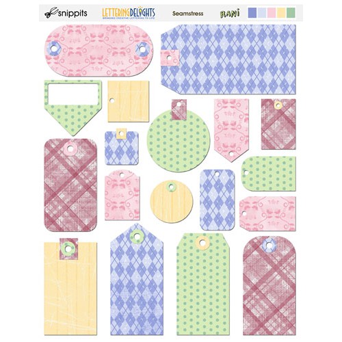 Download this colorful full-sized sheet of printable tags, in argyle, plaid, and polka dot designs. These round and rectangular tags are great for scrapbook embellishing and journaling. Add matching ribbon and eyelets, and tie it on to a gift. You'll find all sorts of uses for these clever, creative tags.