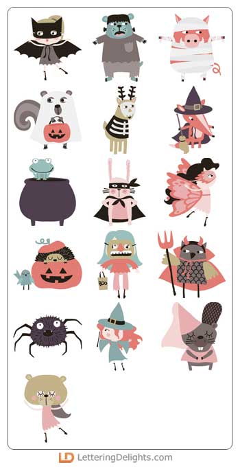 Autumn's favorite animals and woodland sprite's are dressed for Halloween. These adorable critters are perfect for scrapbooking, planners, partiers and more!