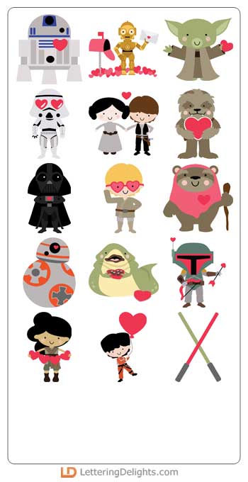 This more love inspired cast of characters fly through space and defend the solar system from falling into the hands of the dark side. It's a war in the stars. This set is perfect for parties, Valentines, scrapbooking and much more!