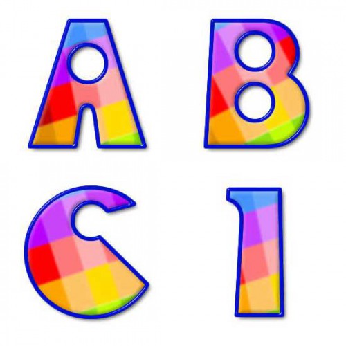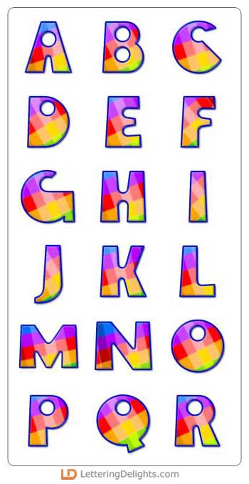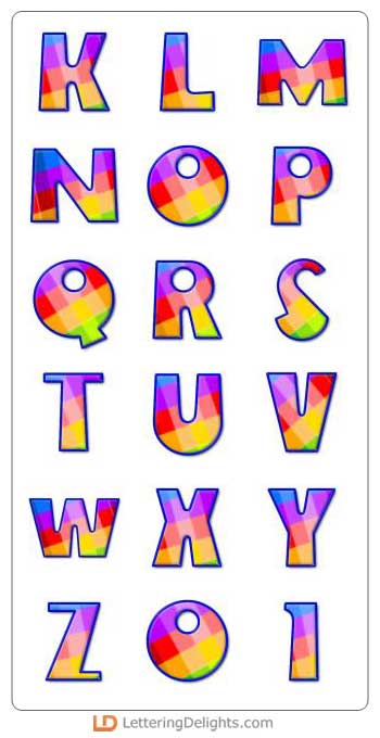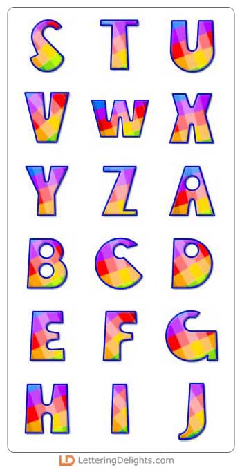 The alphabet is made up of a splash of bright colors. They are in a block pattern and full of color.