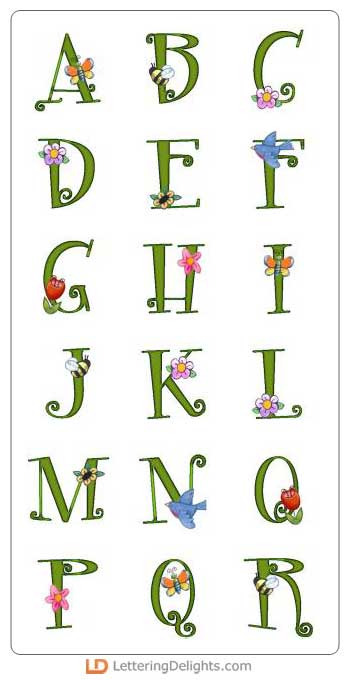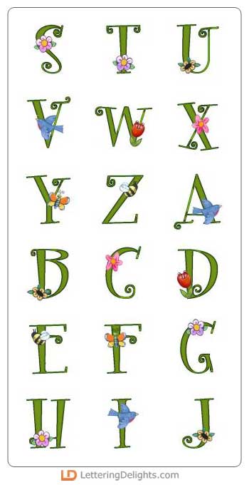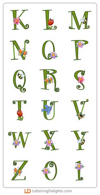 This narrow-lettered alphabet is blossoming for your garden or springtime greeting cards, scrapbook albums, newsletters and party invitations.