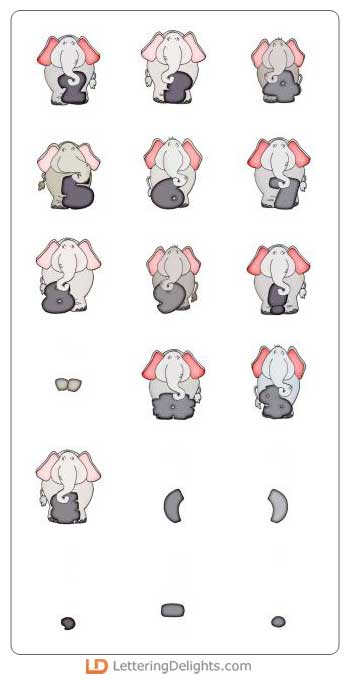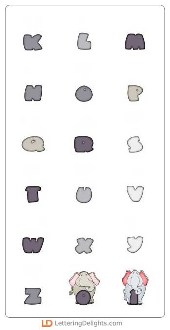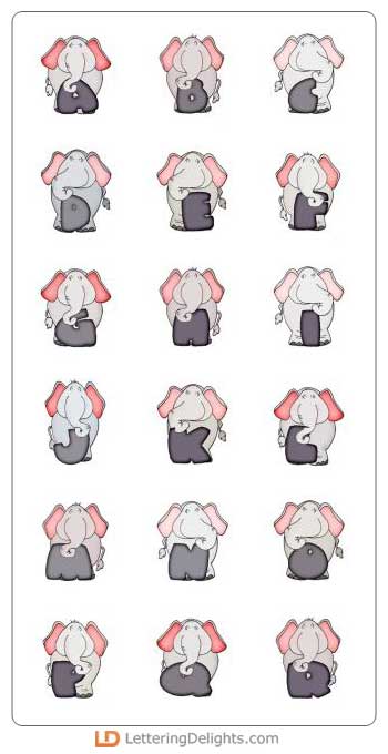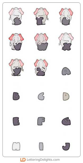 Adorable elephants sit atop the capital letters of this jungle alphabet. They are very cute!