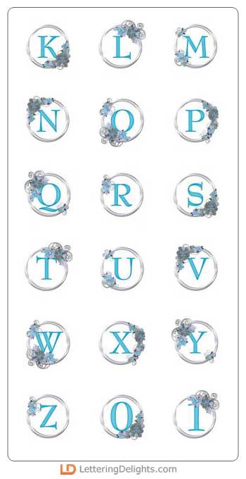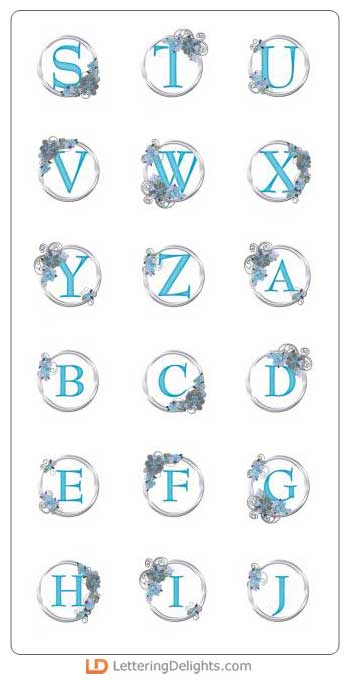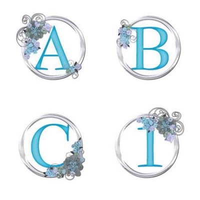 This beautiful alphabet a silver ring with a pastel blue letter inside. It also has some flowers too. It's georgeous!