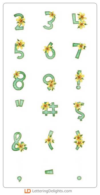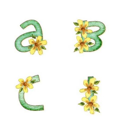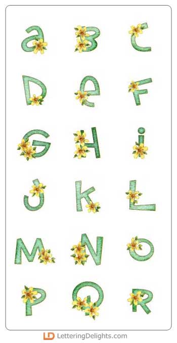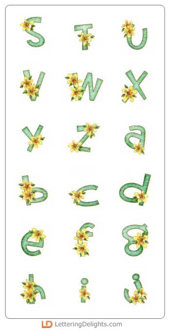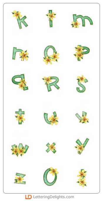 The letters of this alphabets are a chalk green with pretty yellow daisies. It's beautiful.