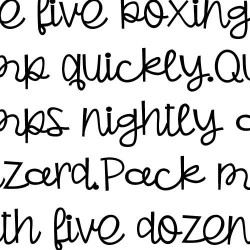 This simple hand-written print has a flourished uppercase and simple script-like print lettering...