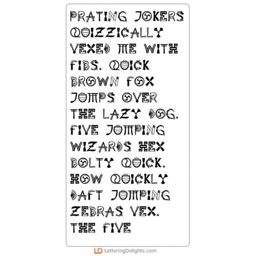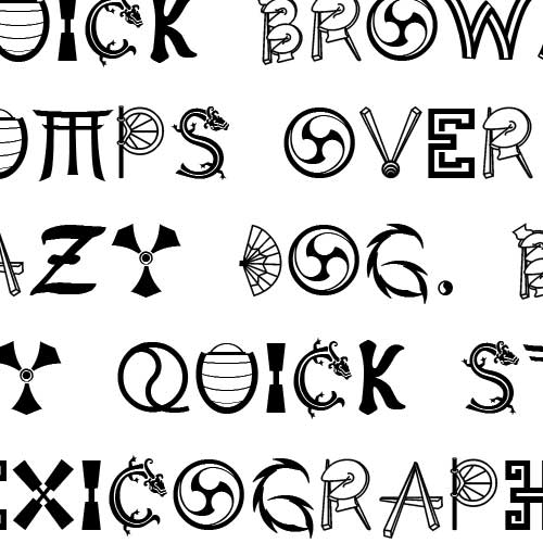 Items signifying the oriental culture make up each letter of this font.