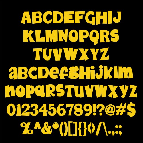 This very youthful font has a bit of toggle in the lettering and makes a great font for titles, displays, posters and more.