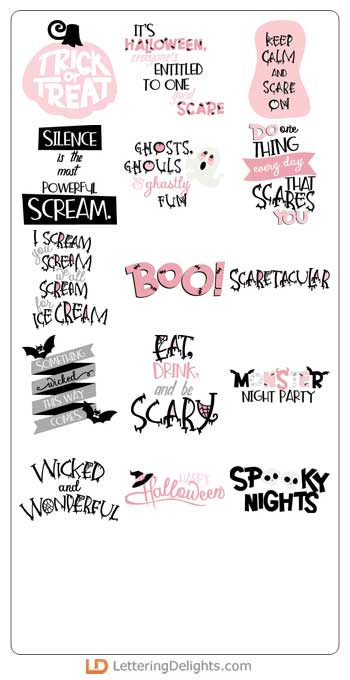 Fun Halloween and scream themed quotes and phrases. Perfect for card making, home decor, crafts and more!