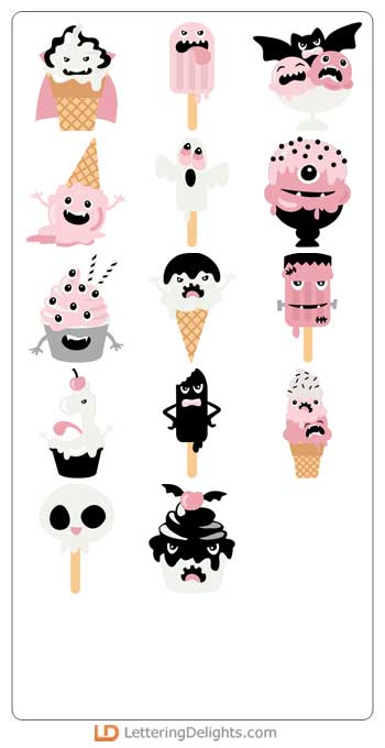 Fun Halloween ice creamed themed graphics that will make you scream! Perfect for the holidays, card making, decor, planner stickers and more!