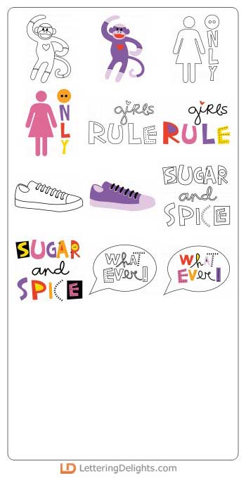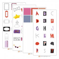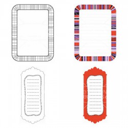 Frames, tags, arrows, borders, and journaling boxes in red, purple, lavender and black (or black and..